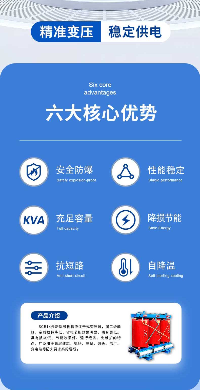 壓器、有載調壓電力變壓器、非晶合金變壓器、SC(B)10 (13)、SG(B)10(13)及SC(B)14(18)新能效系列干式變壓器、開關柜及組合式變壓器、箱式變電站及防竊電、礦用、整流、電爐等特殊電力變壓器。產品廣泛用于電力、核電站、交通、礦山、冶金、建筑、石化、化工、電氣化鐵道、地鐵、城市輕軌、軍隊國防、通訊、城鄉電網建設與改造等行業的輸配電系統,熱銷全國。