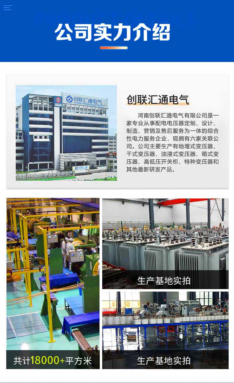 創聯匯通主營產品有:S11(13)、S20(22)新能效及SH15系列10KV級~110KV級油浸式電力變