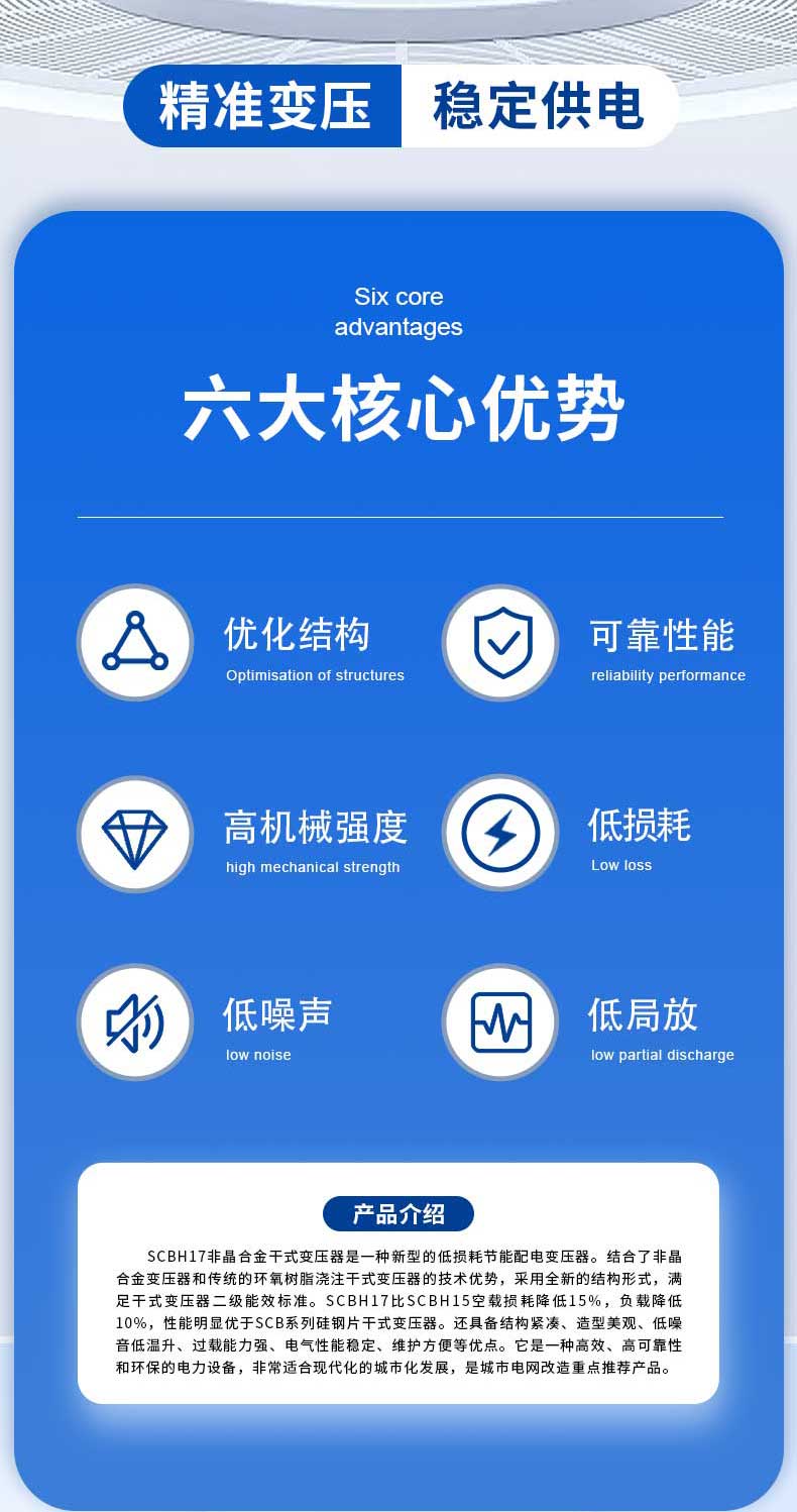 壓器、有載調(diào)壓電力變壓器、非晶合金變壓器、SC(B)10 (13)、SG(B)10(13)及SC(B)14(18)新能效系列干式變壓器、開關(guān)柜及組合式變壓器、箱式變電站及防竊電、礦用、整流、電爐等特殊電力變壓器。產(chǎn)品廣泛用于電力、核電站、交通、礦山、冶金、建筑、石化、化工、電氣化鐵道、地鐵、城市輕軌、軍隊(duì)國防、通訊、城鄉(xiāng)電網(wǎng)建設(shè)與改造等行業(yè)的輸配電系統(tǒng),熱銷全國。